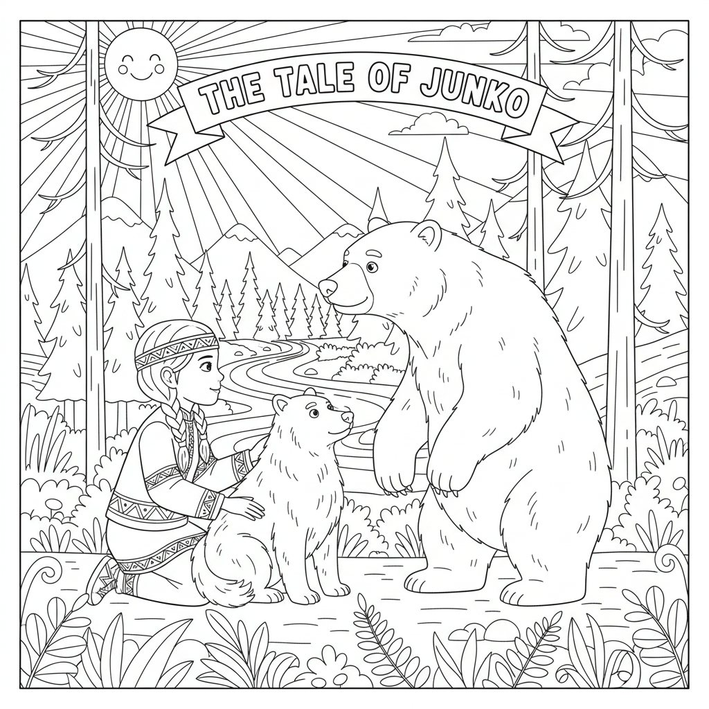Enter our art contest! Simply download a picture to color, or create your own drawing. Submit a coloring page drawing of a young child (ages 6–16) with their spirit animal in a nature setting. All art styles are welcome, but your design must be in a coloring page format. The winning artwork will be featured on this page. After you complete the form below, you may also email your finished coloring page to thetaleofjunko@gmail.com to enter the contest.